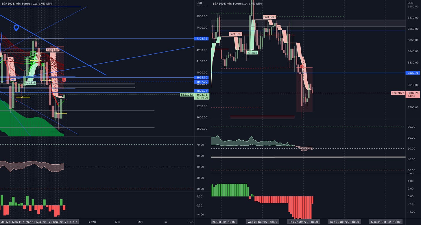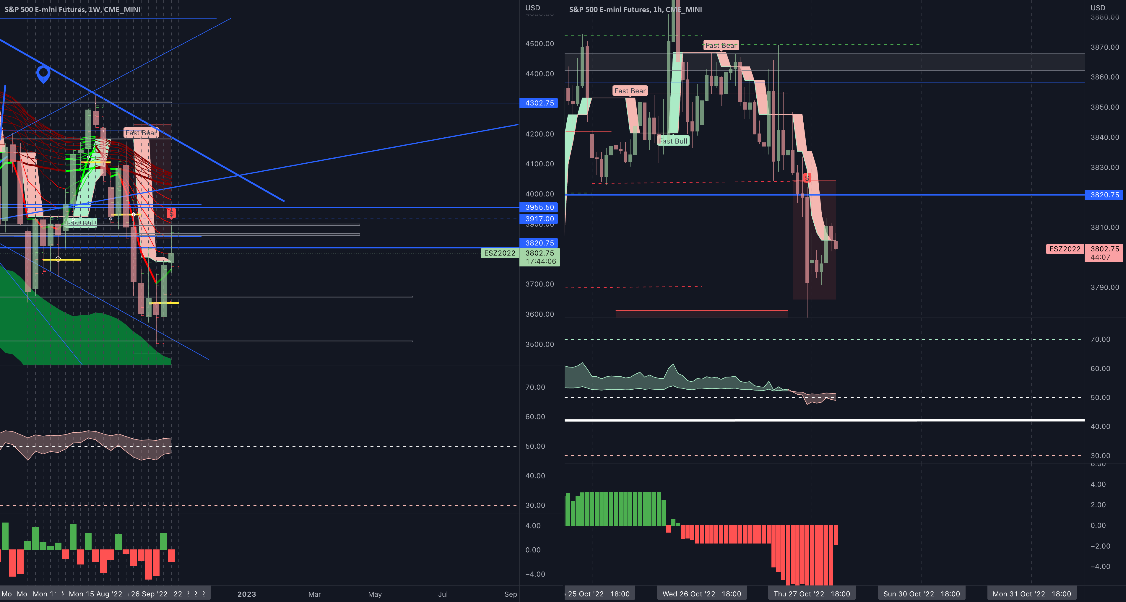 The Writing on the Wall for S&P (ES)QuantVueOct 27, 20221ShareComparing AlgoBuddy weekly to AlgoBuddy hourly told us all we needed to know. Trading and executing shorts were on the radar the whole week. Bear rally cut short for ES and looking for next leg down.
