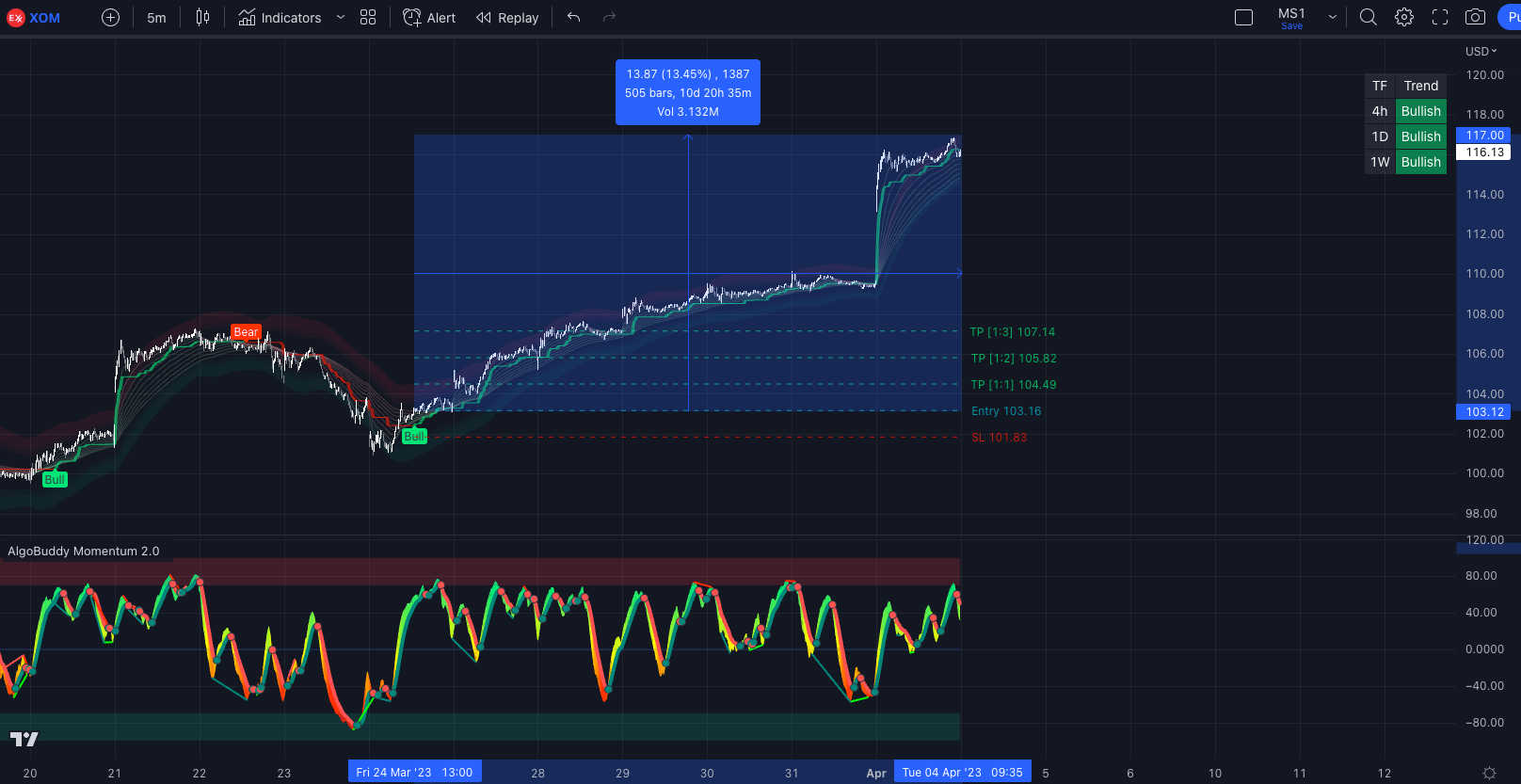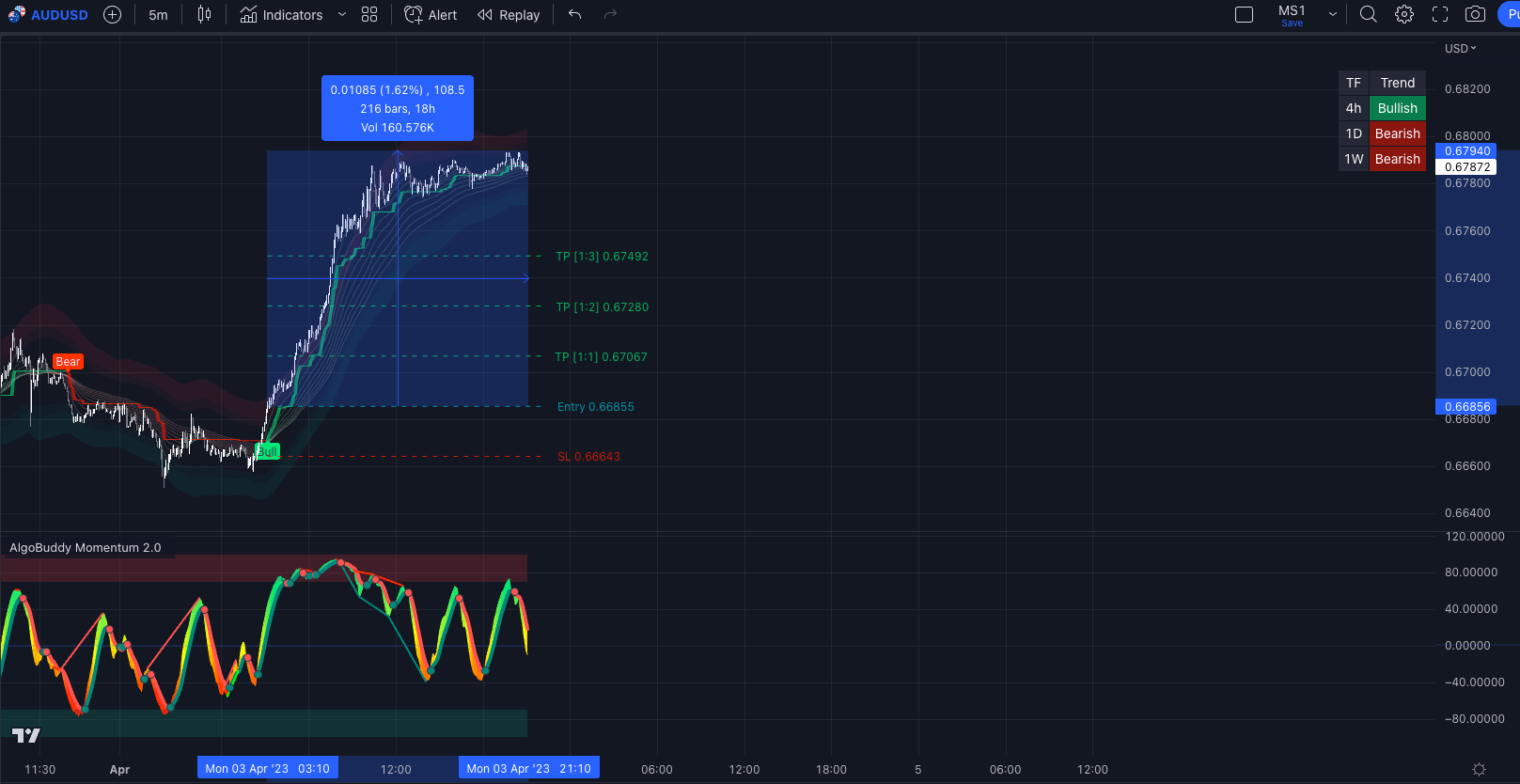 Oh, here are some recent wins from the AlgoBuddy indicators: