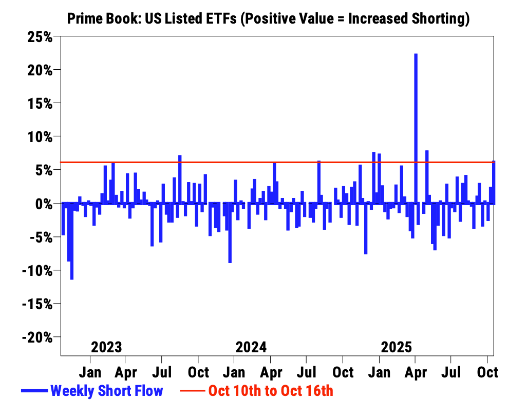 We’ve seen hedge funds net selling US equities at the fastest pace since early April. US ETF shorts saw the largest percentage increase in over five months.