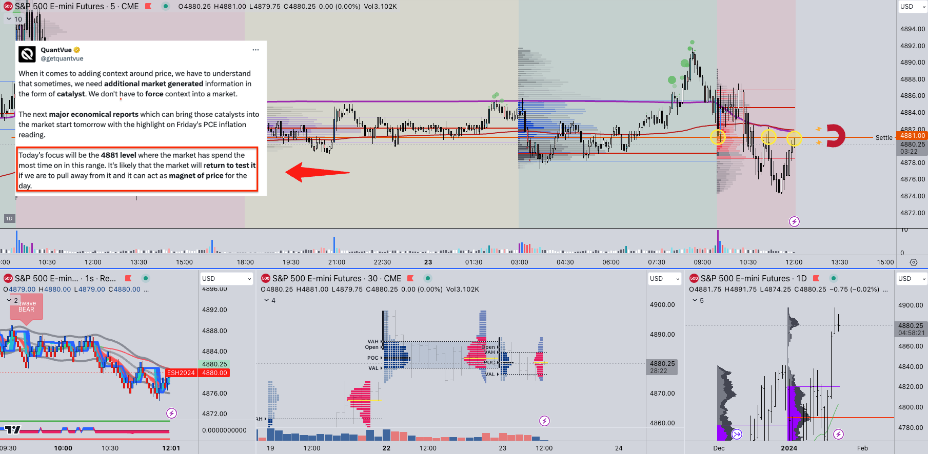 By utilizing our market report that we’ve posted several hours ago into the overnight session ‘Read it here’, pared with our Tradingview suite + Q_Pro, we were able to spot some key trading opportunities as the market followed up on the context around 4881, which as we’ve highlighted, could act as magnet for price to return towards when the market extend itself away for the day.